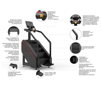 - - Консоль: оснащений дисплеєм для відображення часу, калорій, пройдених сходинок, швидкості та інших параметрів.