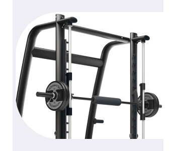 Система блокування: Тренажер оснащений системою блокування, яка дозволяє зафіксувати гриф у будь-якій точці траєкторії. Це забезпечує безпеку під час тренувань, особливо при роботі з великими вагами.