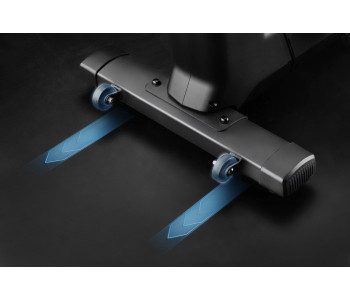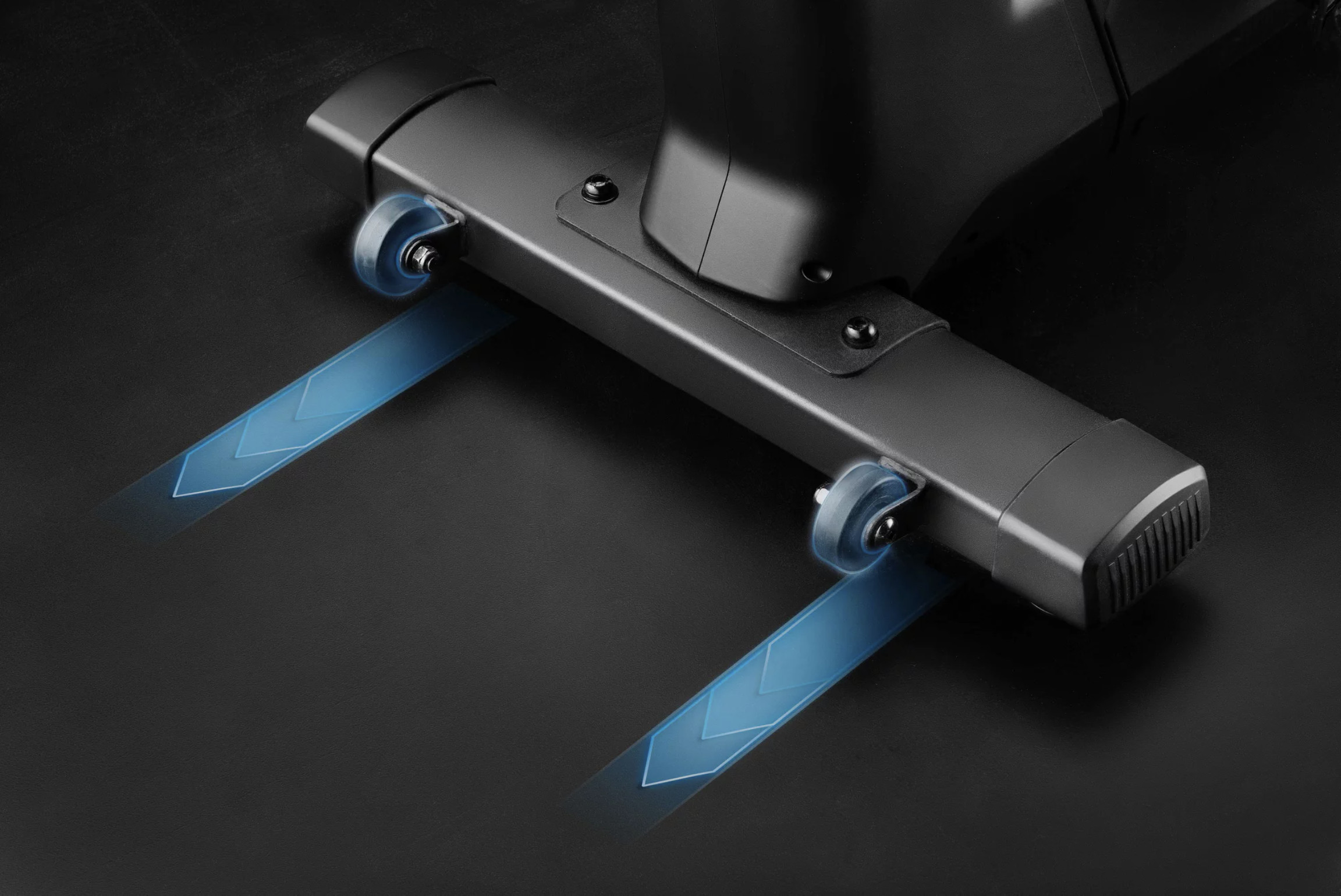 - Транспортні ролики, розташовані на основі пристрою, дозволяють легко переміщувати велотренажер для кардіотренувань по дому без особливих зусиль. Це особливо корисно для тих, хто прагне зберігати вільний простір після занять.