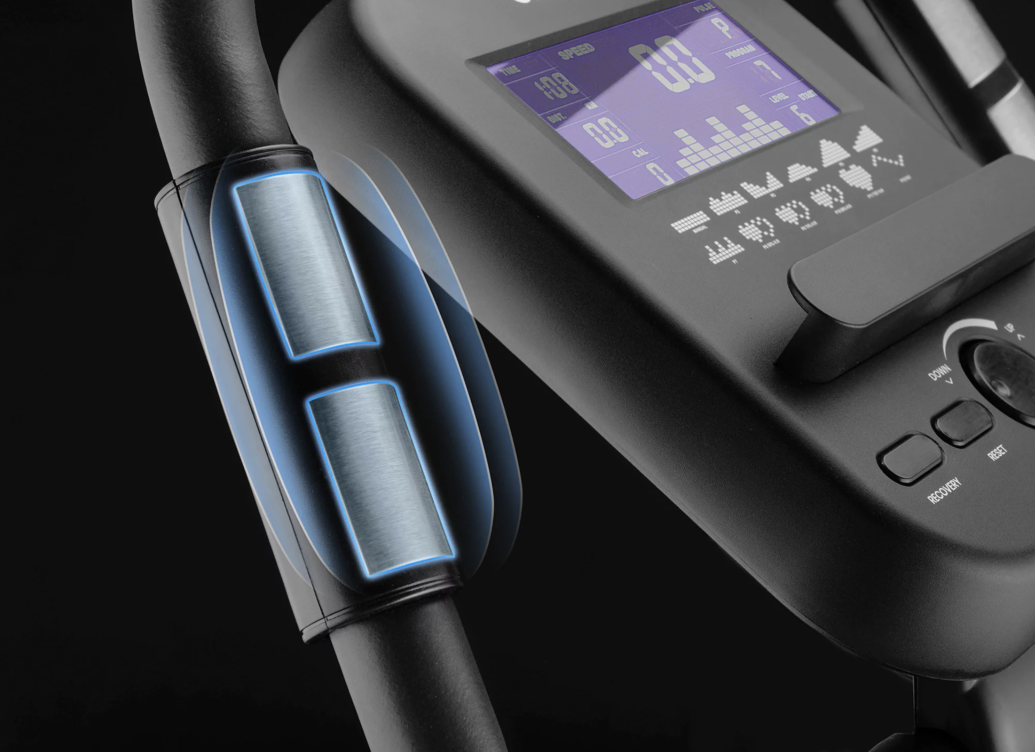 Датчики пульсу, вбудовані в кермо цього велотренажера для дому, дозволяють ефективно контролювати інтенсивність тренувань, забезпечуючи оптимальне навантаження для досягнення ваших цілей. Це робить пристрій ідеальним для кардіотренувань вдома або використання як тренажера для схуднення.