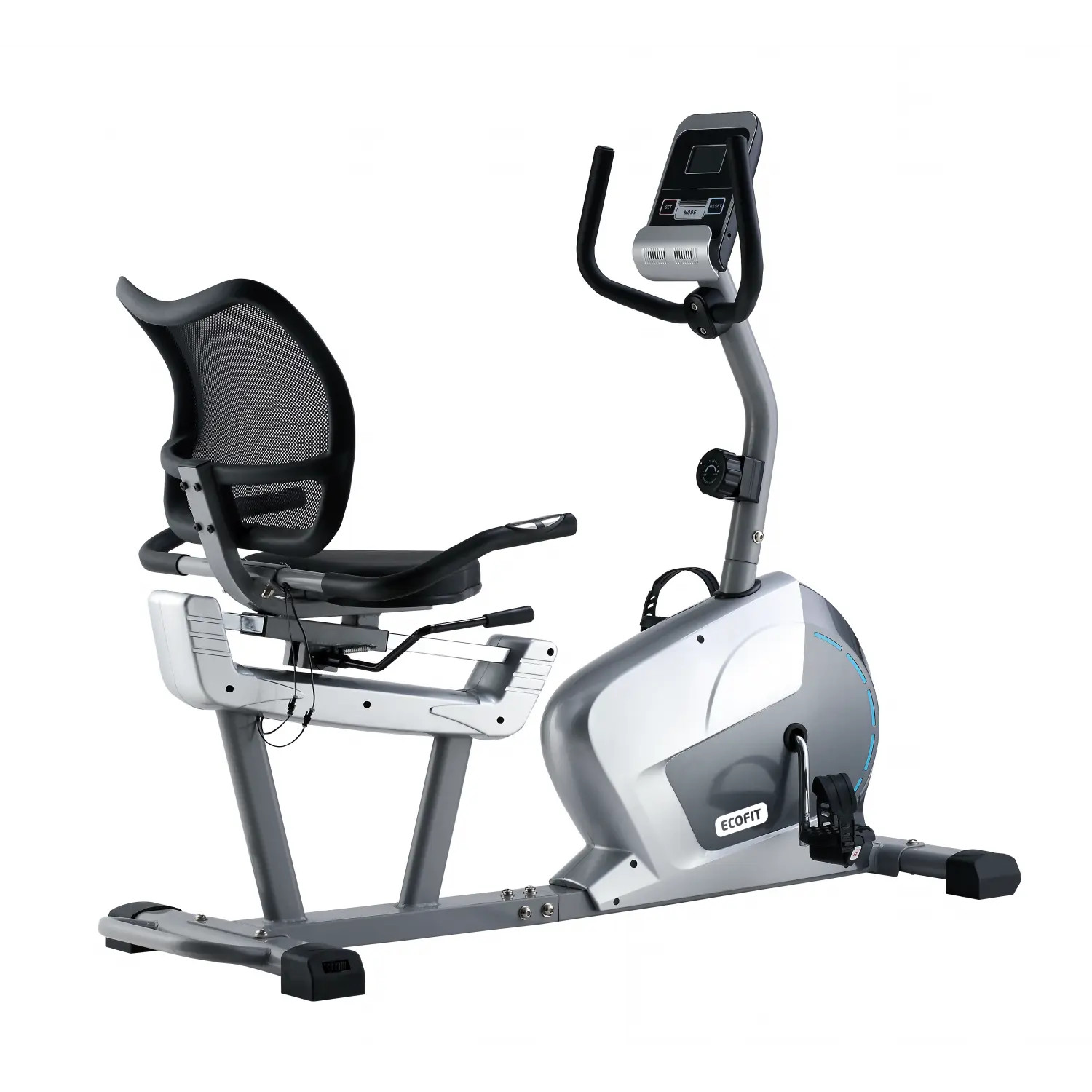 EcoFit E-439R — це надійний горизонтальний велотренажер, створений спеціально для реабілітації, домашніх тренувань і покращення загального фізичного стану. Завдяки ергономічному дизайну, м’якому сидінню зі спинкою та простому доступу, цей тренажер є чудовим вибором для людей з обмеженою рухливістю, болями у спині або післяопераційного відновлення. Плавний хід, тиха робота та точний контроль навантаження роблять EcoFit E-439R універсальним рішенням для користувачів будь-якого віку та рівня підготовки.
