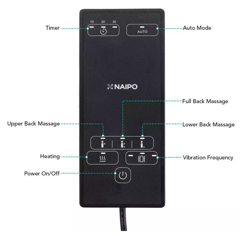 Масажна накидка на крісло NAIPO Neck & Back Massager з підігрівом, вібрацією та функцією масажу Шиатцу (MGBK-2606H)