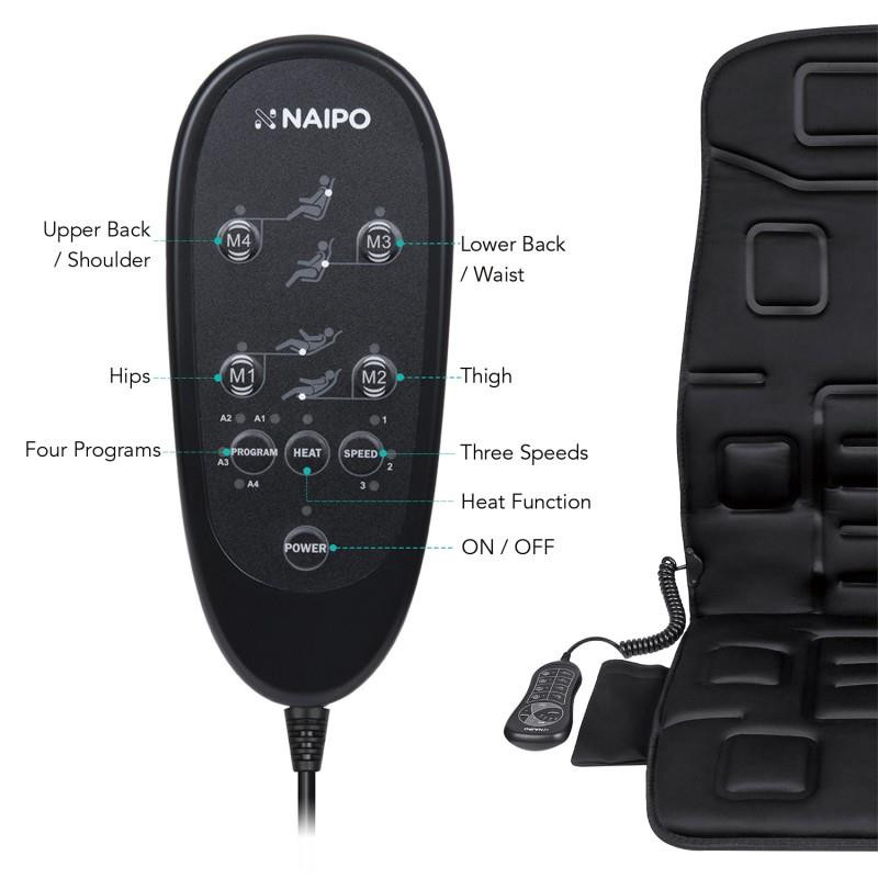 Головна > Масажне обладнання > Масажні накидки > Масажна накидка на крісло NAIPO з підігрівом та вібрацією (MGC-168)