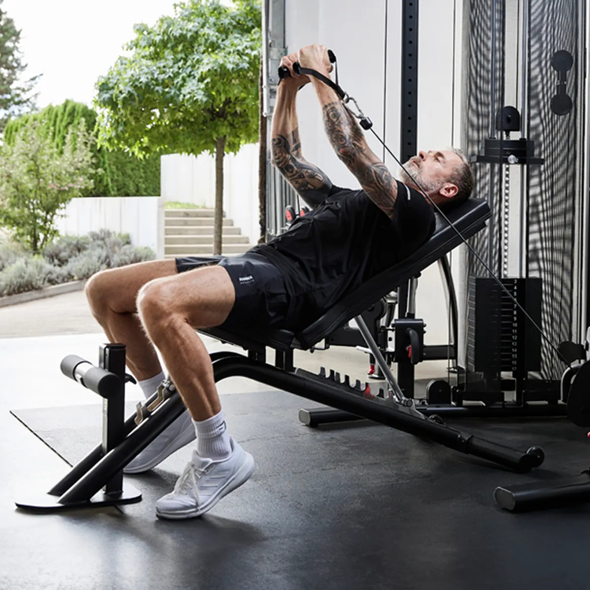 Розширте свої тренування за допомогою додаткових модулів, таких як парта для біцепса або модуль для розгинання/згинання ніг. Швидкий монтаж додаткових модулів забезпечує максимальну різноманітність під час тренувань.
