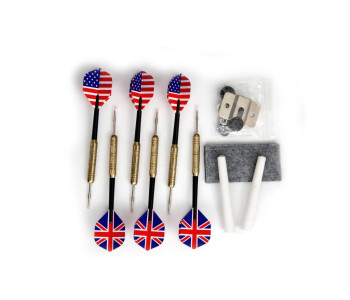 У набір входять 6 високоякісних дротиків. Їхні барелі виготовлені з латуні і вкриті накаткою, що дозволяє чіпко утримувати дротик пальцями. Баланс дротиків забезпечують хвостовик із високоміцного пластику та оперення із тонкого полікарбонату.