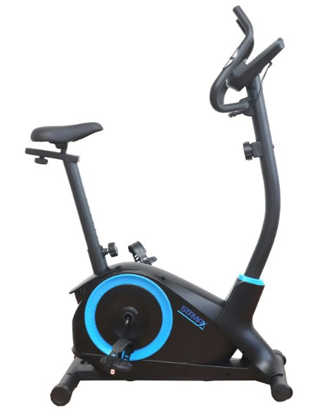 Stamax Ultra – це вертикальний магнітний велотренажер з максимальною вагою користувача до 120 кг. Міцна сталева рама гарантує стійкість і довговічність конструкції навіть за інтенсивних навантажень. Махове колесо масою 9 кг забезпечує плавний хід педалей без ривків, імітуючи відчуття їзди на справжньому велосипеді. Магнітна система навантаження працює безшумно й не потребує обслуговування – замість тертя використовуються магніти, що забезпечує тихий хід і довговічність механізму. Користувачеві доступно 8 рівнів навантаження, що регулюються вручну: це дозволяє легко підібрати оптимальну інтенсивність тренування під свій рівень підготовки – від легкої розминки до серйозного кардіонавантаження.