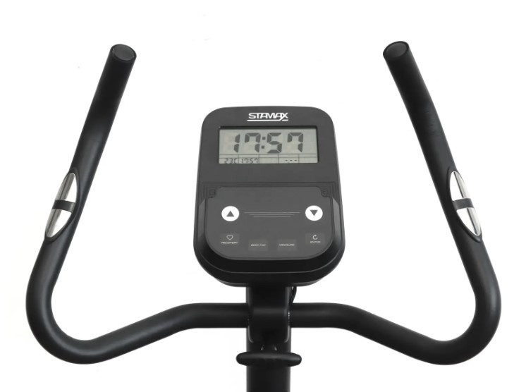 Велотренажер Stamax Ultra оснащений зручним LCD-дисплеєм, що відображає всі ключові параметри тренування. У режимі реального часу на екрані показуються час заняття, поточна швидкість, пройдена дистанція, витрачені калорії, а також частота пульсу. Датчики пульсу вмонтовані в ручки керма: достатньо покласти долоні на сенсори, і прилад почне зчитувати ваш пульс. Контроль частоти серцевих скорочень дозволяє тренуватися в оптимальній кардіозоні для спалювання жиру чи зміцнення серця.