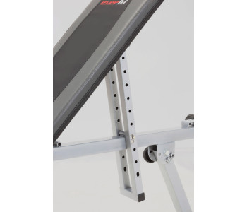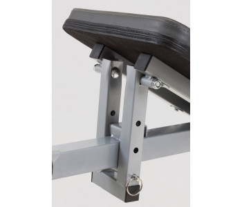 - Універсальність: Спинка регулюється у 10 положеннях (0-80°) та може досягати 90° при нахилі сидіння, що дозволяє виконувати різні варіації жиму, скручувань і тягових рухів.
