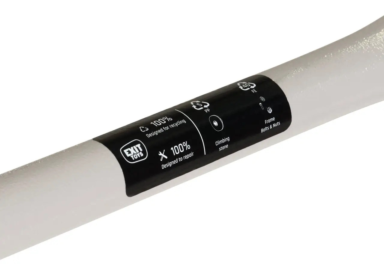 Дитячий купол для скелелазіння був розроблений відповідно до стійкої концепції EXIT. Це означає, що він підлягає ремонту, для кожної окремої деталі є запасні частини. Більше того, при виробництві використовуються тільки моно матеріали, купол на 100% підлягає вторинній переробці. Це чистий матеріал, що складається всього з однієї сировини. Сталеві труби оцинковані і покриті порошковою фарбою. Це означає, що у іржі немає шансів - ігровий комплекс EXIT витримує будь-які погодні умови. Це гарантує роки ігрового задоволення!