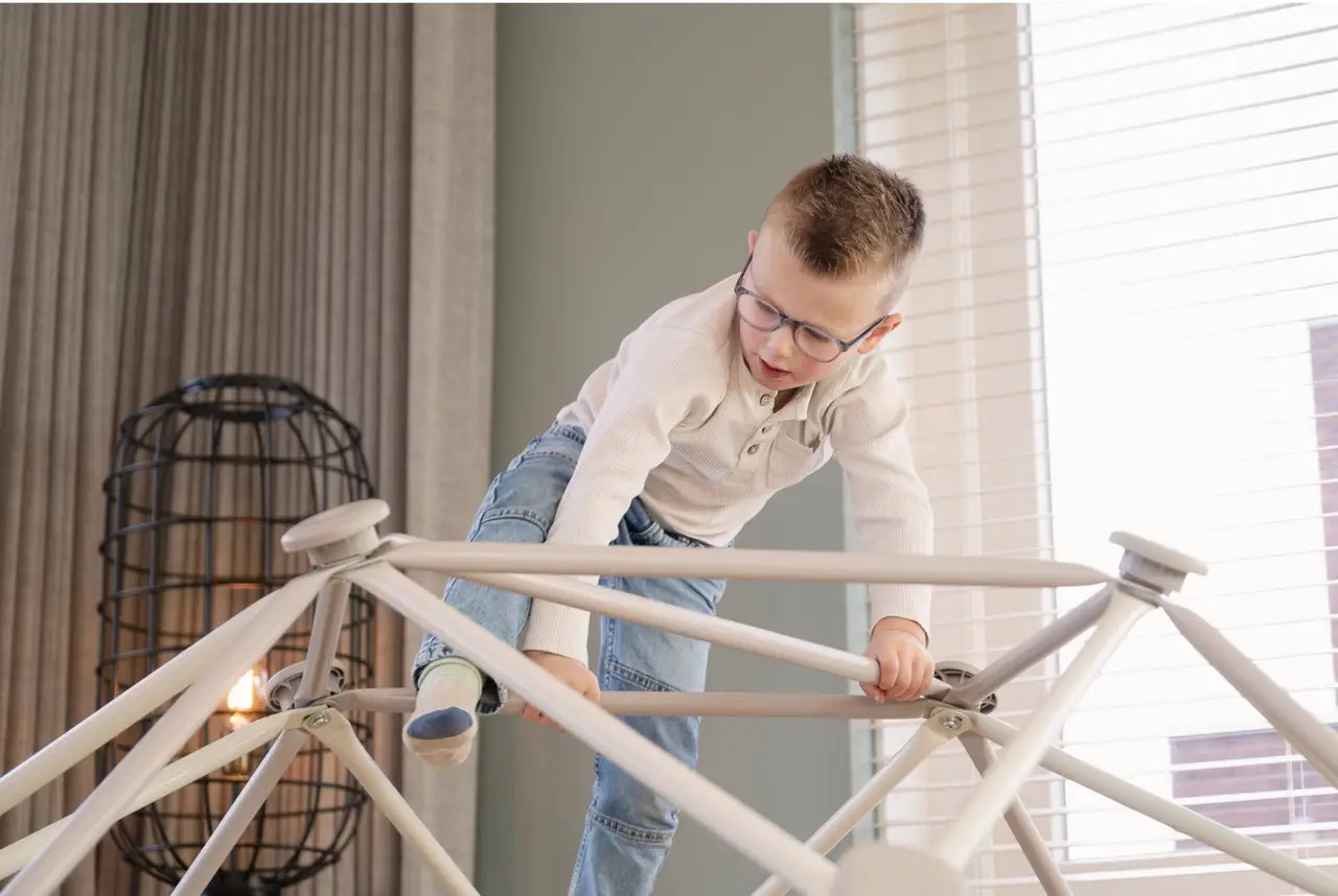 Цей купол універсальний. Ви можете перетворити свій дім або сад на парк для скелелазіння. Лазячи і провисаючи на перекладинах куполу, діти покращують координацію, рівновагу і силу. Ще ідея - перетворити купол для скелелазіння у веселий ігровий намет, повісивши на нього декілька покривал. З цим багатофункціональним ігровим елементом діти зможуть дати волю своїй уяві!