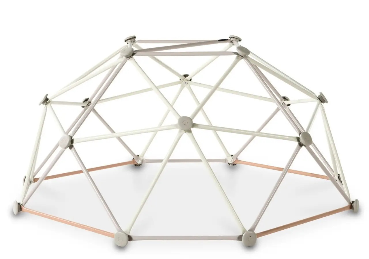 Дитячий металевий купол для скелелазіння ø190 см - пастель. Завдяки своїм компактним розмірам купол можливо використати як на відкритому повітрі, так і в приміщенні. Сталеві труби легкої конструкції і камені для лазіння забезпечують надійну фіксацію рук і ніг під час лазіння. Сучасний дизайн в нейтральних тонах гарантує, що ця конструкція стильно виглядатиме у будь-якому інтер'єрі або саду.
