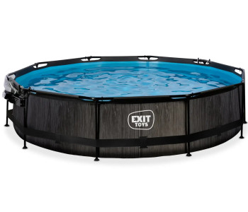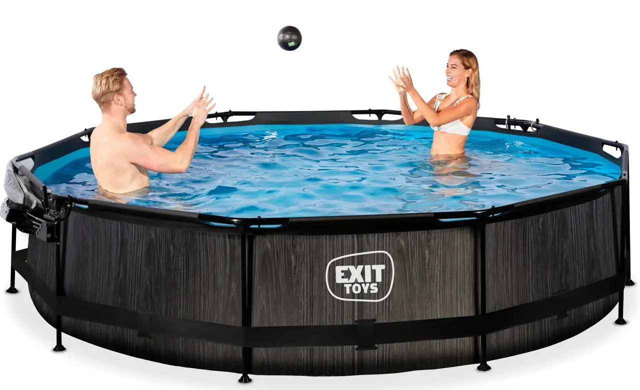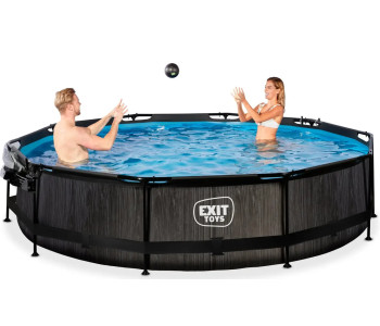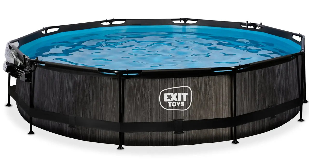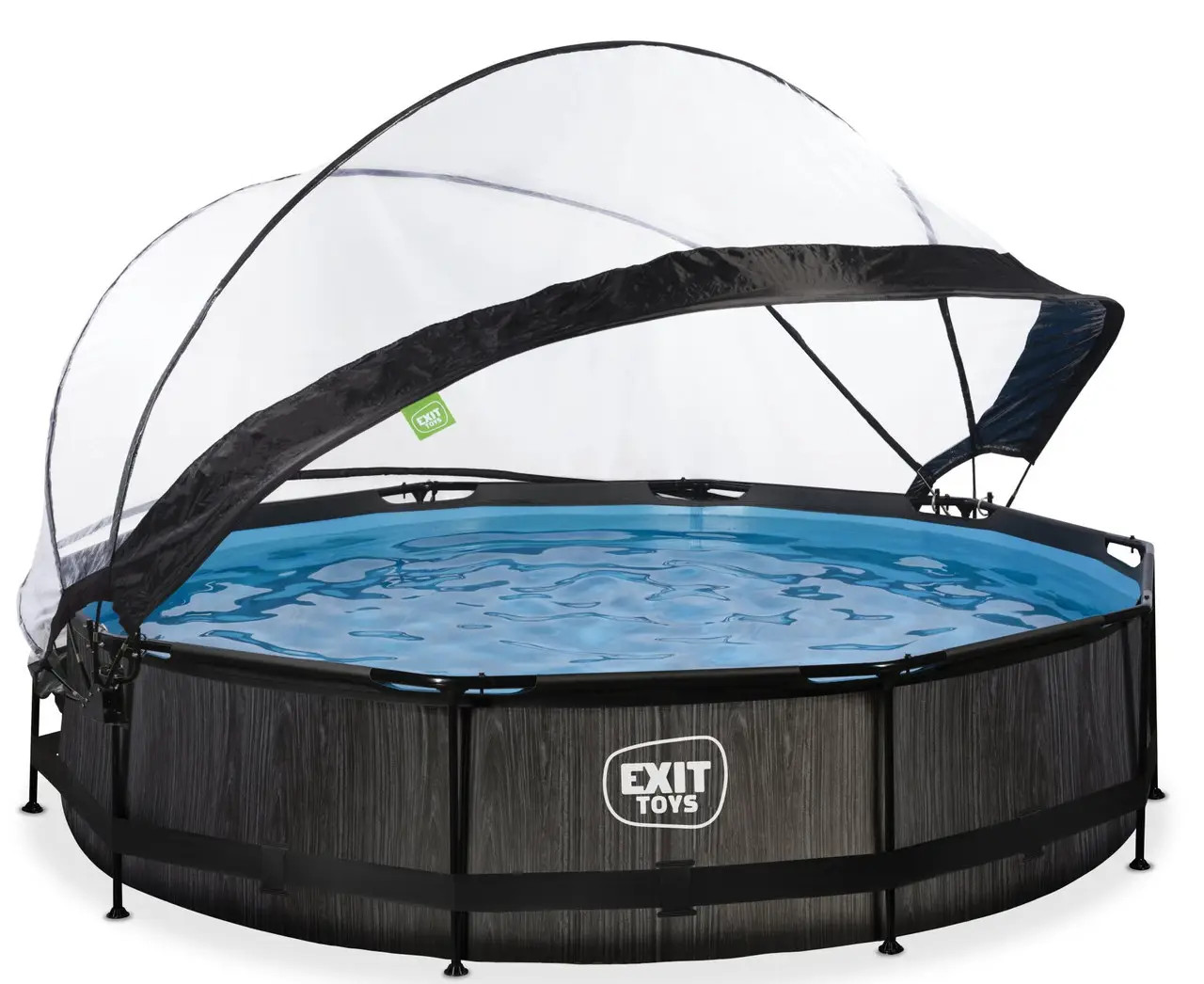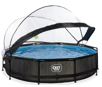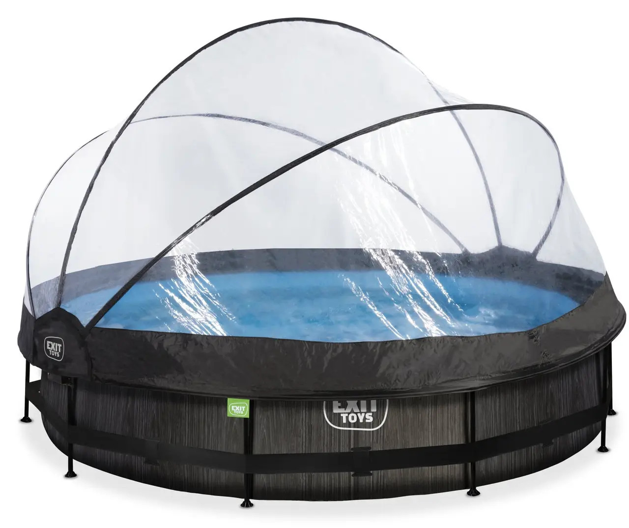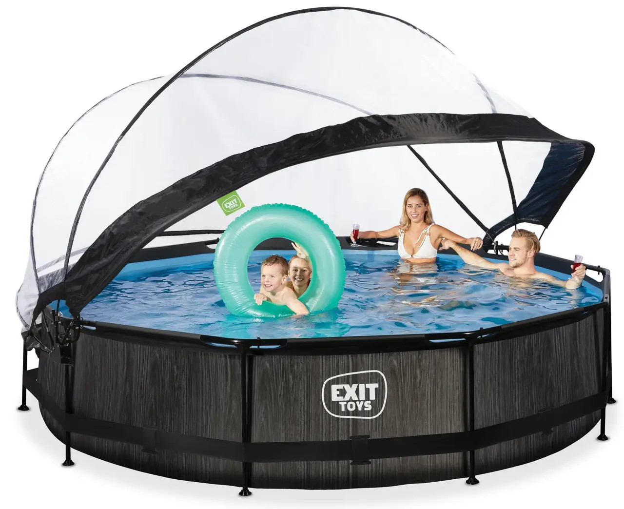Басейн 360 х 76 см з куполом EXIT "чорне дерево" виглядає лаконічно і елегантно. З зовнішньої сторони - тканина "чорне дерево", що зробить його розміщення в саду, на дачі або у дворі будинку особливо естетичним.