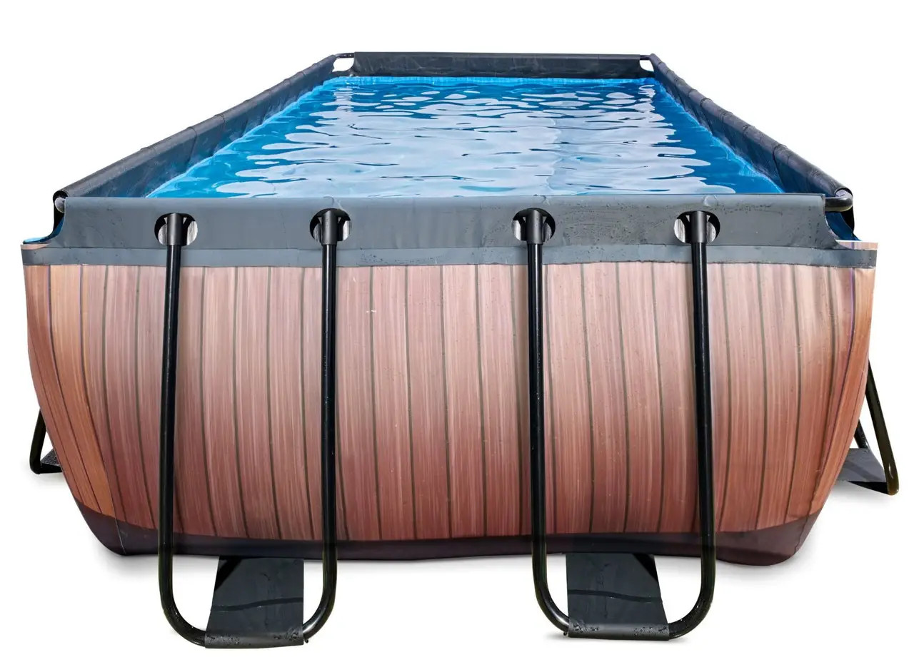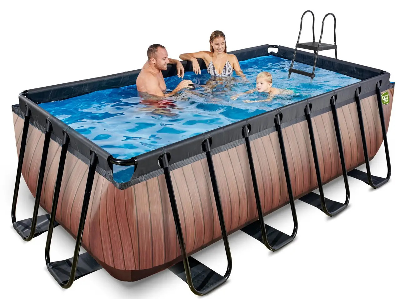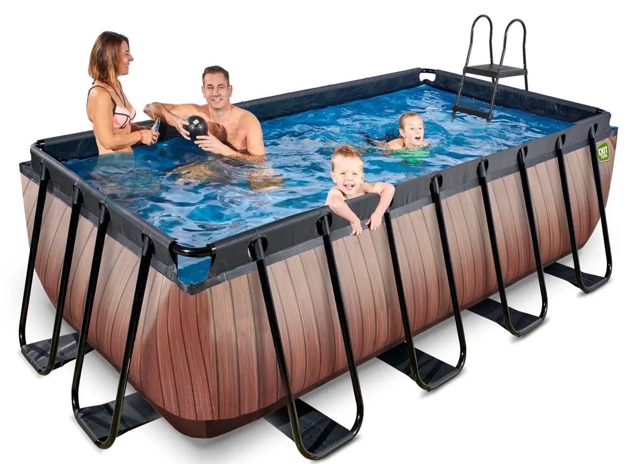 Басейн прямокутної форми, стандартно оснащений насосом із піщаним фільтром та драбинкою, що забезпечує комфортний і безпечний вхід і вихід із нього. Каркасні басейни з наземними куполами EXIT Toys багатофункціональні, довговічні й ідеально підходять для непередбачуваної літньої погоди!