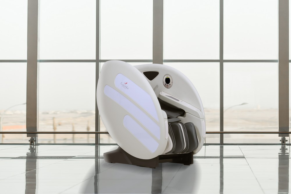 На підлокітнику є бездротова зарядка, де можна зарядити телефон під час сеансу масажу.