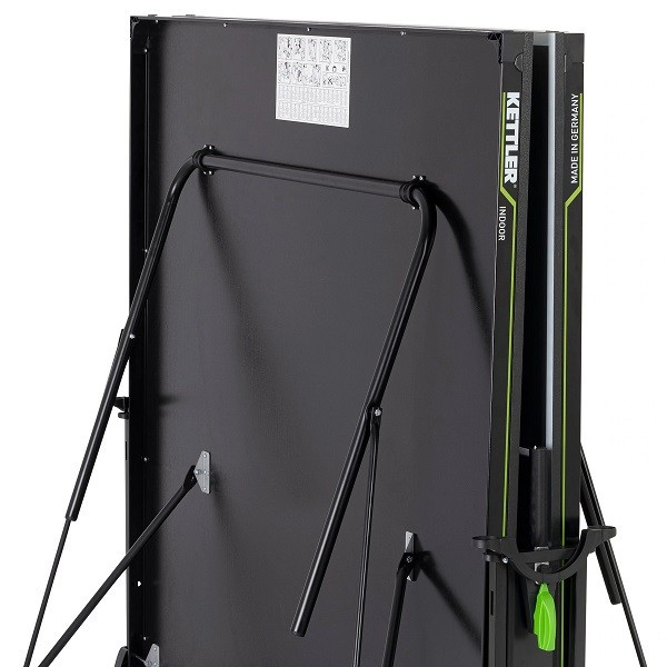 Стіл для пінг-понгу KETTLER можна складати лише з одного боку верхньої частини. Це дозволить вам грати одному, відбиваючи м'яч від складеної частини столу.