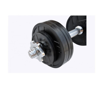 Качественный стальной гриф для гантели. Благодаря навесной зоне 13 см, на гантель можно одеть до 40 кг стальных или обрезиненных дисков.