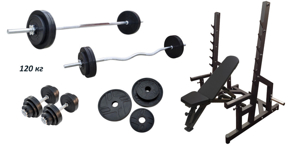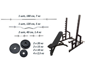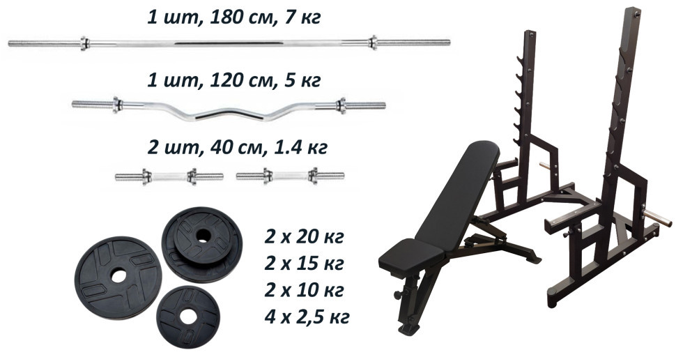 Профессиональный комплект лавка, стойка + набор гантель и штанг от RN-Sport