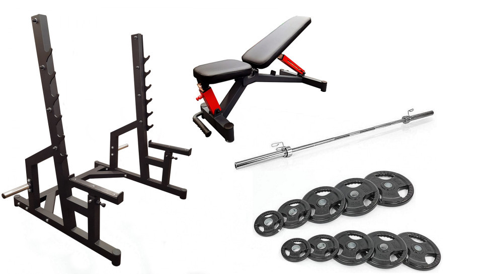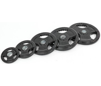 - Сталеві гумові диски з хватом для рук: 2х 20 кг, 2х 15 кг, 2х 10 кг, 2х 5 кг, 2х 2.5 кг