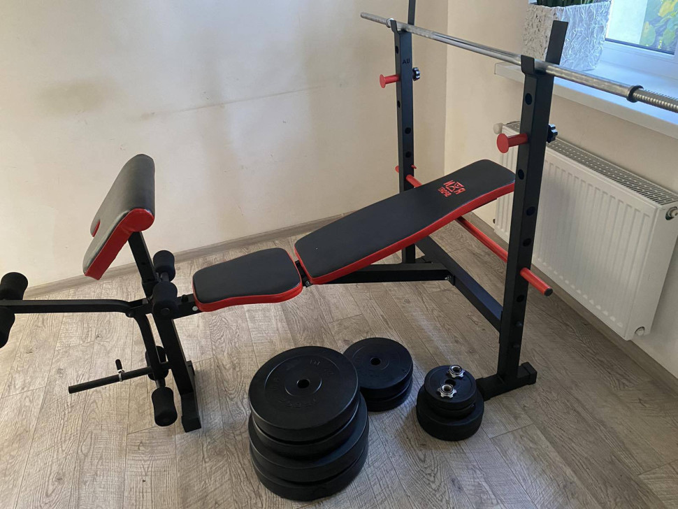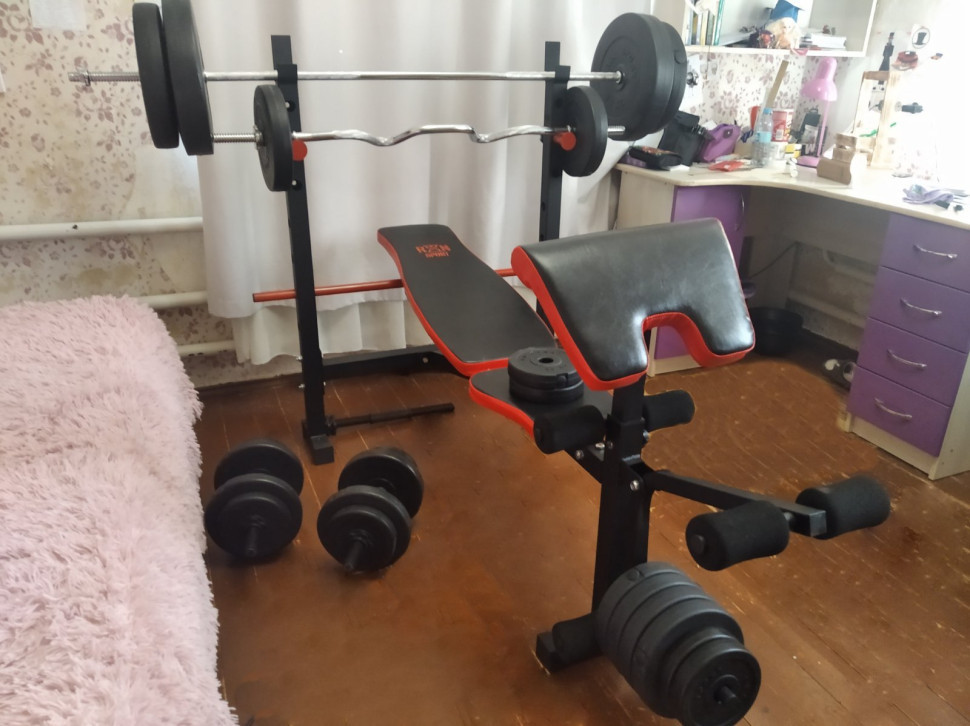 - На штангу 2х1, 25 кг, 2х2, 5 кг; 2х5 кг; 2х10; 2х15 кг