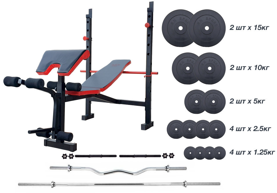 - 4х1,25 кг, 4х2,5 кг; 2х5 кг; 2х10; 2х15 кг.