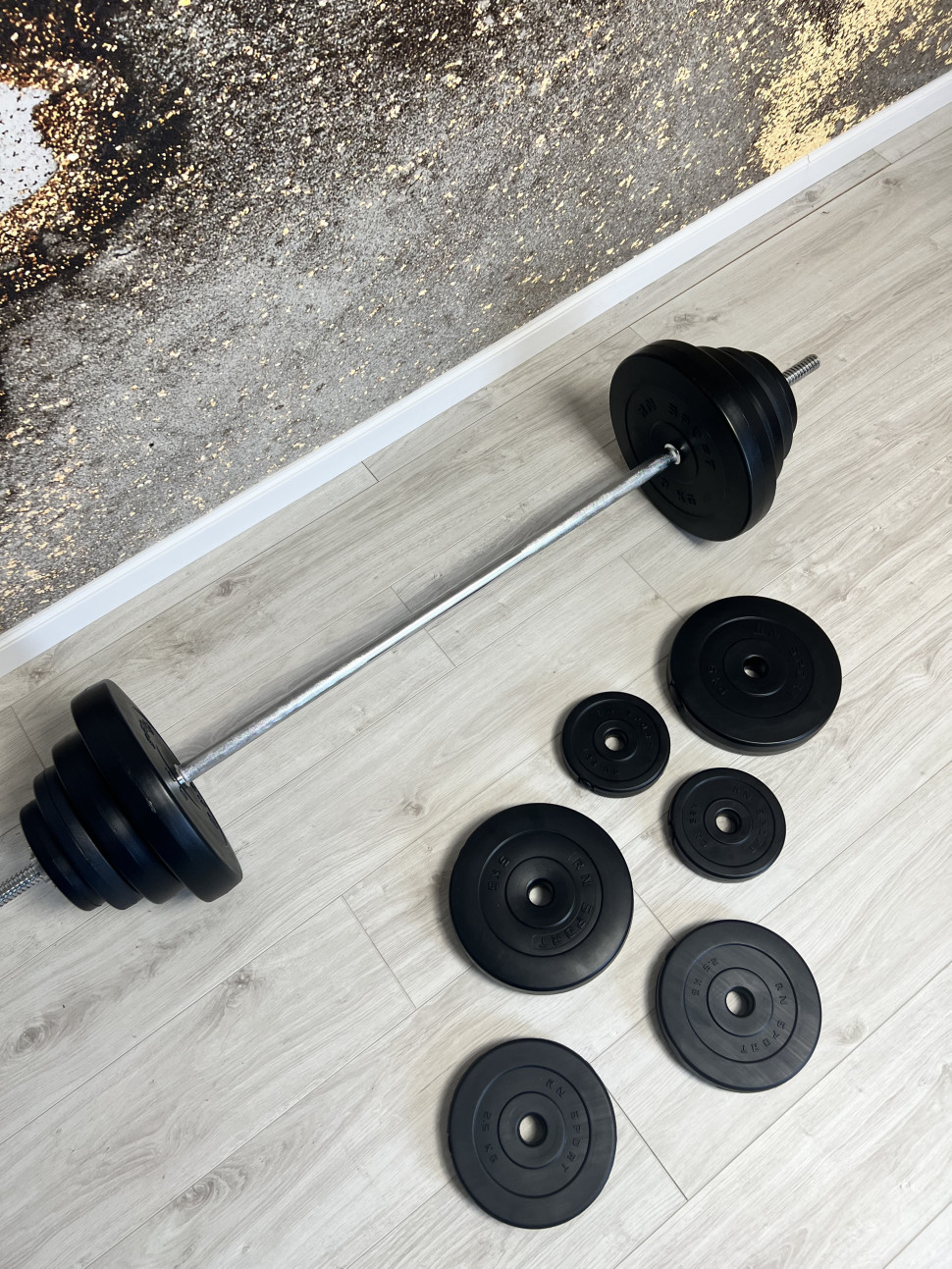 67,5 кг дисків: 2х15кг, 2х10кг, 2х5кг, 2х2. 5кг, 2х1. 25кг