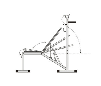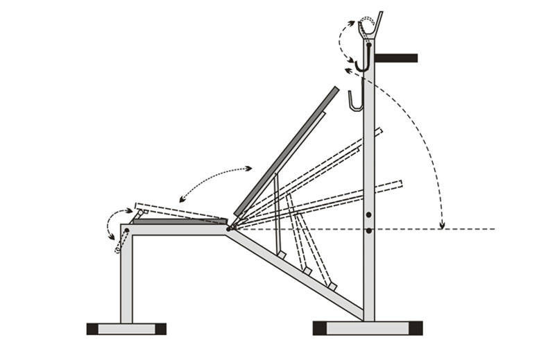 Для виготовлення рами лавки використовується профіль зі сталі промислового класу, зручні сидіння обшиті міцним полівінілхлоридом, стійким до зносу. Кут нахилу лави фіксується міцними стопорними штифтами, що гарантують користувачеві абсолютну безпеку на тренуваннях. Регульовані по висоті стійки під штангу дозволяють тренуватися з будь-яким стандартним грифом, а широкі ніжки стійкі забезпечують стабільність всієї конструкції.