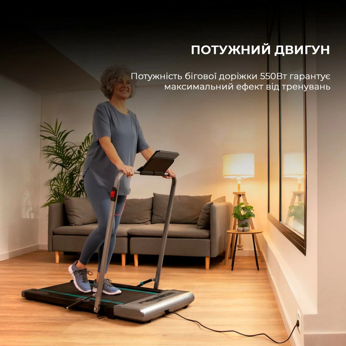 Ви можете оптимізувати тренажер під ваші потреби та відповідно до рівня підготовки завдяки регулюванню швидкості від 1 до 6 км/год. Так ви зможете підібрати оптимальний швидкісний режим або змінювати інтенсивність тренування для більш точного пропрацювання різних груп м'язів. Повільний темп дозволяє розігрітися чи пройти спокійне тренування, а максимальна швидкість підходить для інтенсивних кардіосесій, покращуючи витривалість та сприяючи спалюванню калорій. Завдяки гнучкому настроюванню швидкості можна поступово збільшувати навантаження, роблячи тренування більш ефективними та результативними.