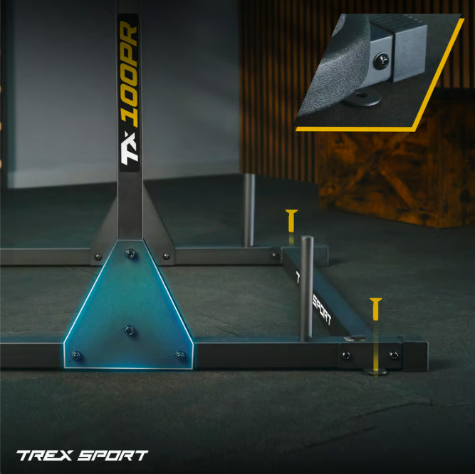 Trex Sport TX-100PR виготовлений із високоякісної сталі, що забезпечує високу стійкість і надійність під час виконання вправ. Завдяки спеціальним протиковзким ніжкам ви можете бути впевнені, що турнік не зсунеться навіть під час найінтенсивніших тренувань. Додаткові кронштейни для кріплення до підлоги гарантують ще більшу стійкість, дозволяючи використовувати турнік у домашніх умовах.