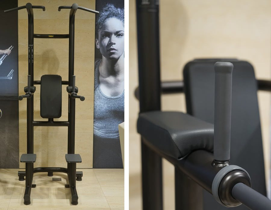 Рукоятки з різними хватами дозволяють більш глибоко та точково опрацювати цільові м'язи. Зручна увігнута подушка для спини, анатомічні підкладки під лікоть та рукоятки для віджимань забезпечують користувачеві правильне положення тіла та підвищений комфорт під час тренування. Гумове покриття ручок гарантує надійне зчеплення з долонею. Спеціальне кріплення дозволяє зафіксувати рушник на спинці турніку. Платформи для ніг із протиковзким покриттям дають надійну опору під час тренувального підходу. Фіксатори до підлоги надійно утримують турнік у встановленому положенні.