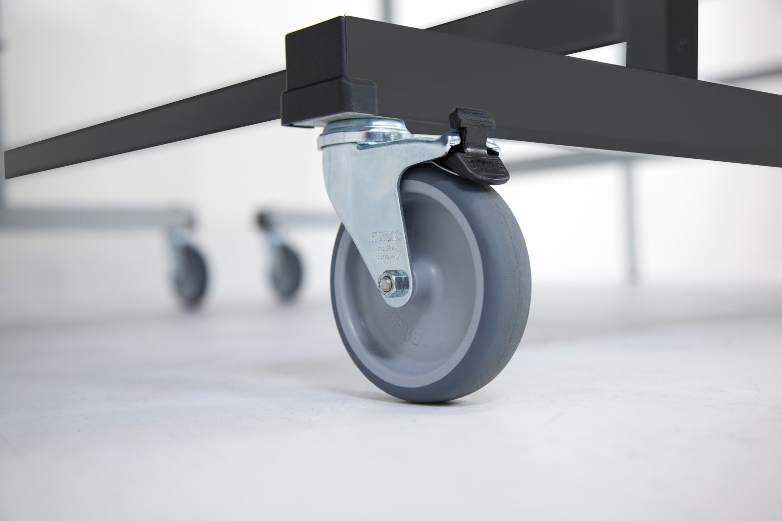 Легке транспортування - кожну половину стільниці можна переміщати на 4 поворотних коліщатках, що полегшує транспортування. Колеса з гумовим покриттям забезпечують стабільність і покращують мобільність, дозволяючи швидко позиціювати стіл.