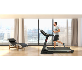 Завдяки інноваційній системі амортизації Multi Air Cushion із 12 подушками та сучасній електроніці, ця бігова доріжка надає змогу контролювати всі основні параметри тренування – швидкість, нахил, пульс, дистанцію, час та калорії. Вбудований повітряний охолоджувач забезпечує оптимальну температуру під час тренувань, що підвищує комфорт навіть при інтенсивних навантаженнях.
