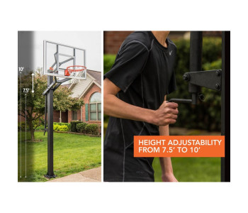 • Щит: щит із прозорого загартованого скла 183 x 107 см із загартованого скла 1,3 см і проекцією 1,2 м (відповідає нормам щодо розміру щита NCAA, FIBA і NBA)