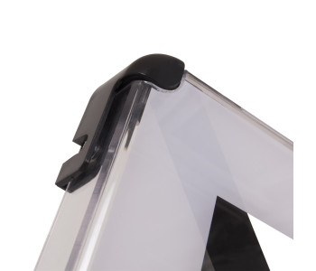 Щит Infinity Edge розміром 137 x 84 см (Ш x В) має кронштейни на чотирьох кутах, які з’єднуються в задній частині щита, що підвищує стабільність. Баскетбольна система постачається з пружинним кошиком, який згинається під навантаженням.