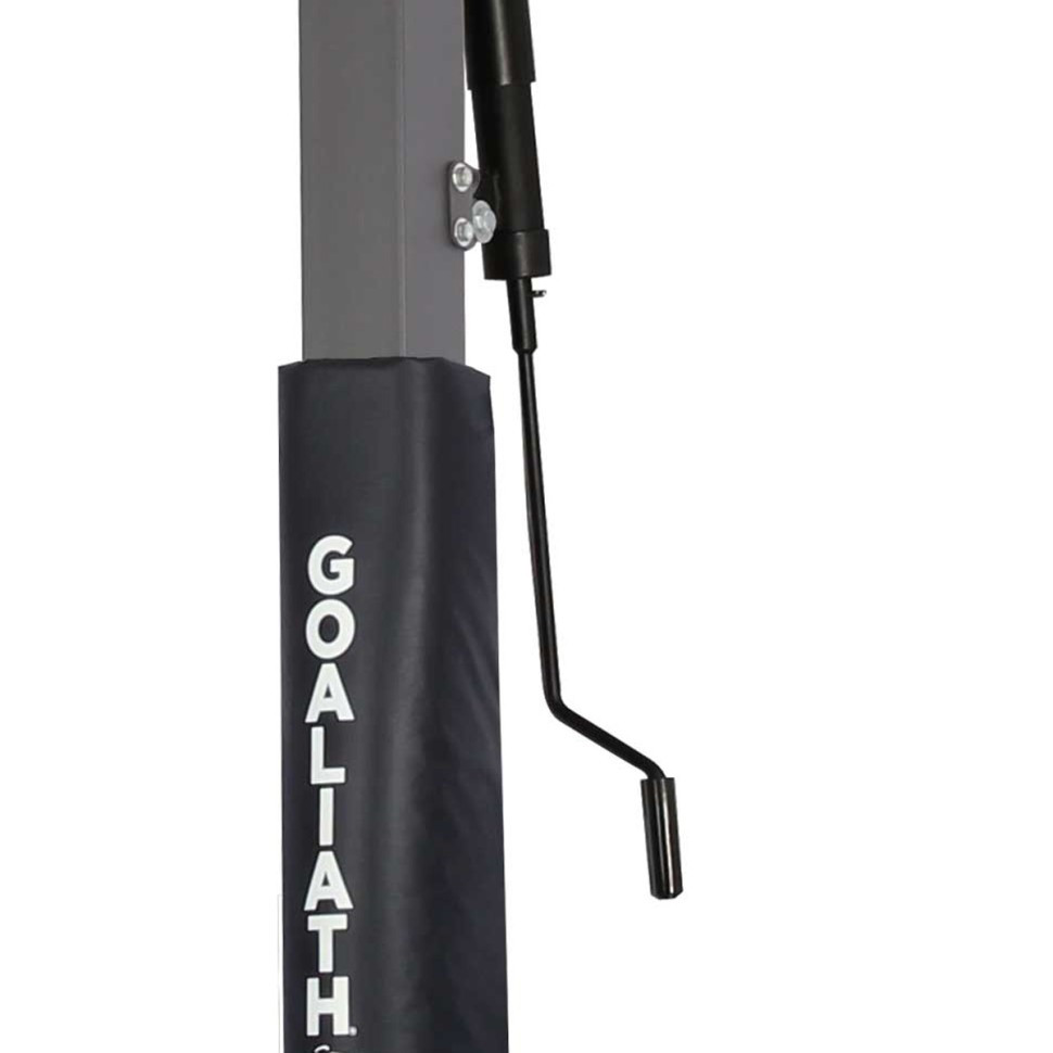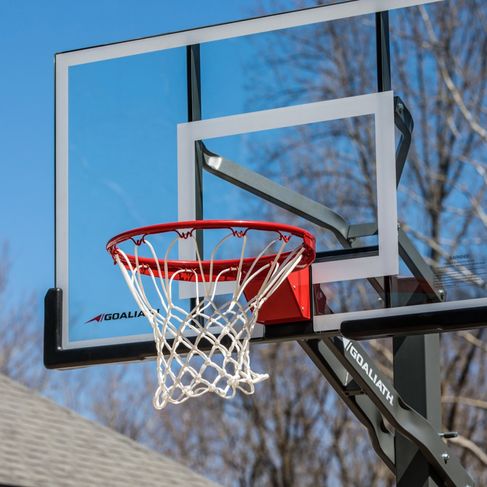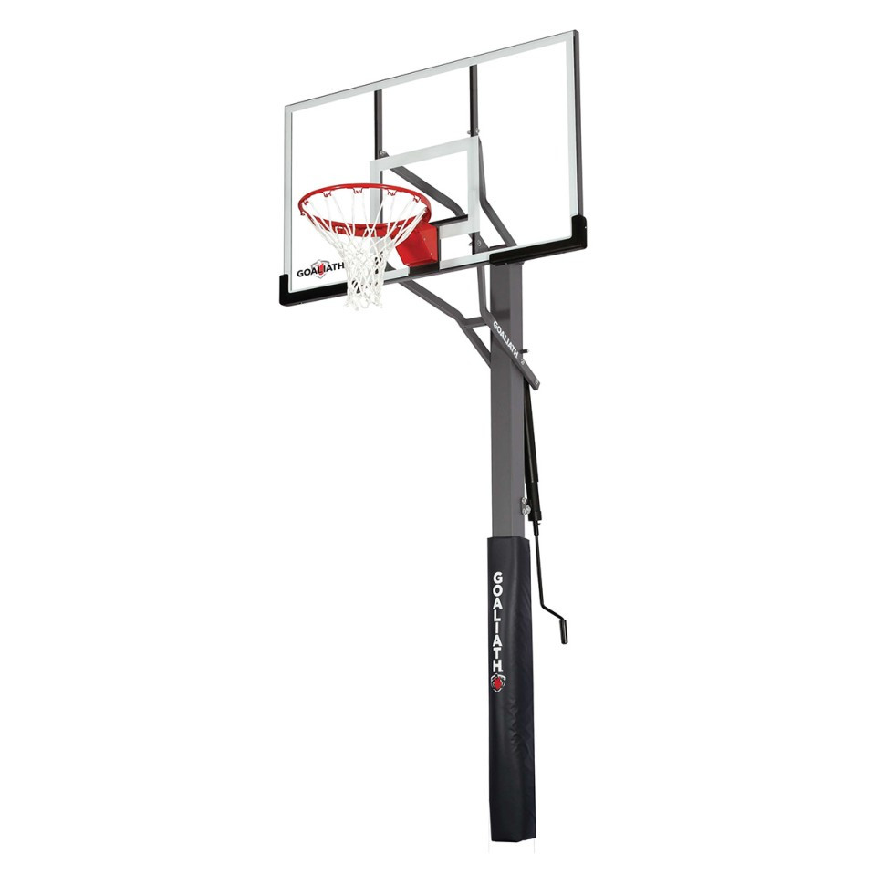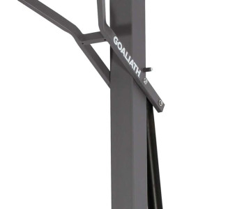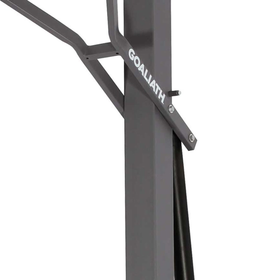 Баскетбольна стійка Goliath GB54 має сталеву щоглу з порошковим покриттям, щит розміром 137 x 84 см і революційну конструкцію кріплення. GB54 кріпиться до землі за допомогою комплекту анкерів для підвищення стабільності та міцності. Дизайн GB54 робить установку максимально швидкою та легкою. Баскетбольна стійка постачається частково зібраним разом із прикріпленим обладнанням і професійним кільцем для відриву. Баскетбольне кільце з пружинним приводом прогинається під навантаженням, подібно до професійних баскетбольних кілець. Відривний кошик також захищає щит, запобігаючи травмам гравців. Висота регулюється від 2,30 до 3,05 метра.