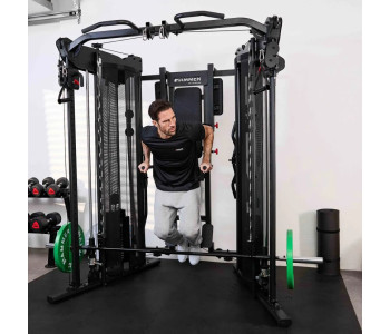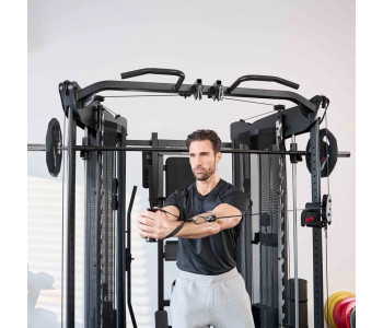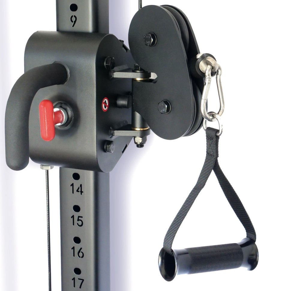 Дві тросові стійки з регулюванням висоти та 4 додаткові тросові тяги відкривають необмежені можливості для тренувань.