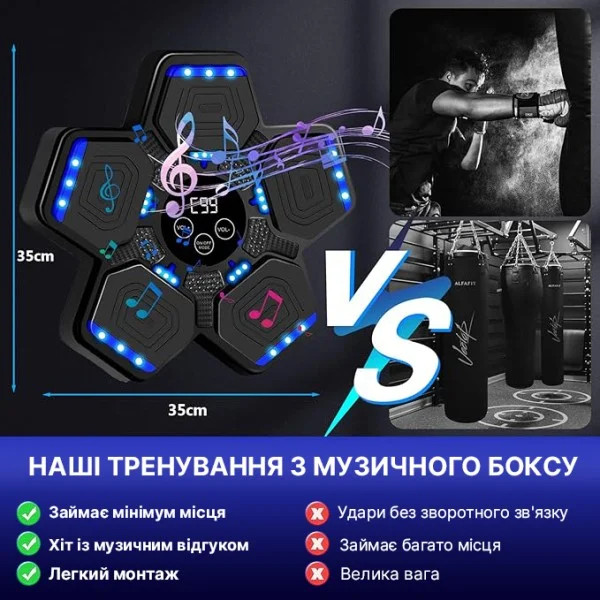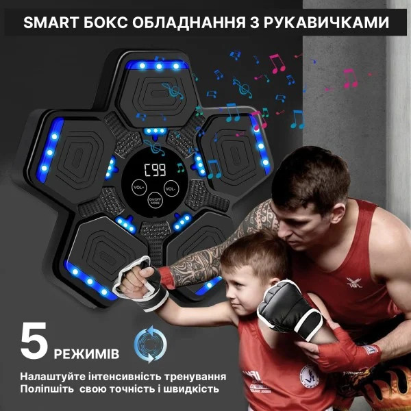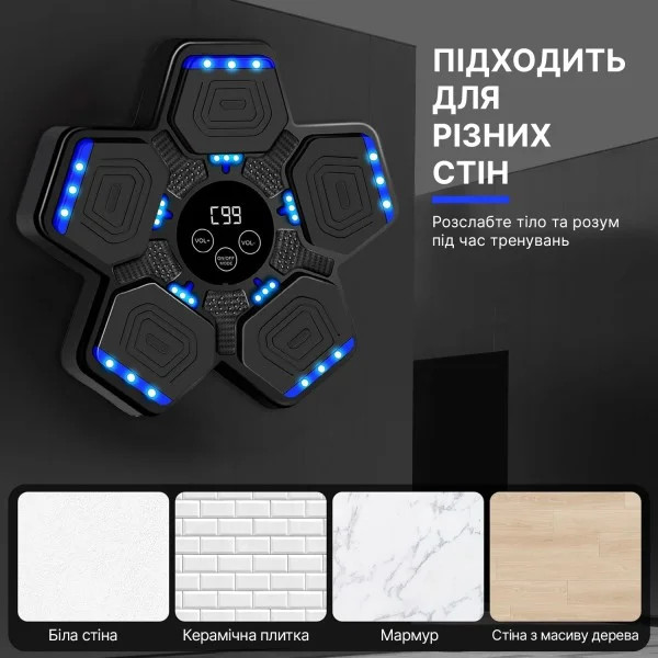 Комплектація: Електрична мішень, боксерські рукавички (кількість може варіюватися в залежності від комплектації), кріплення для стіни.