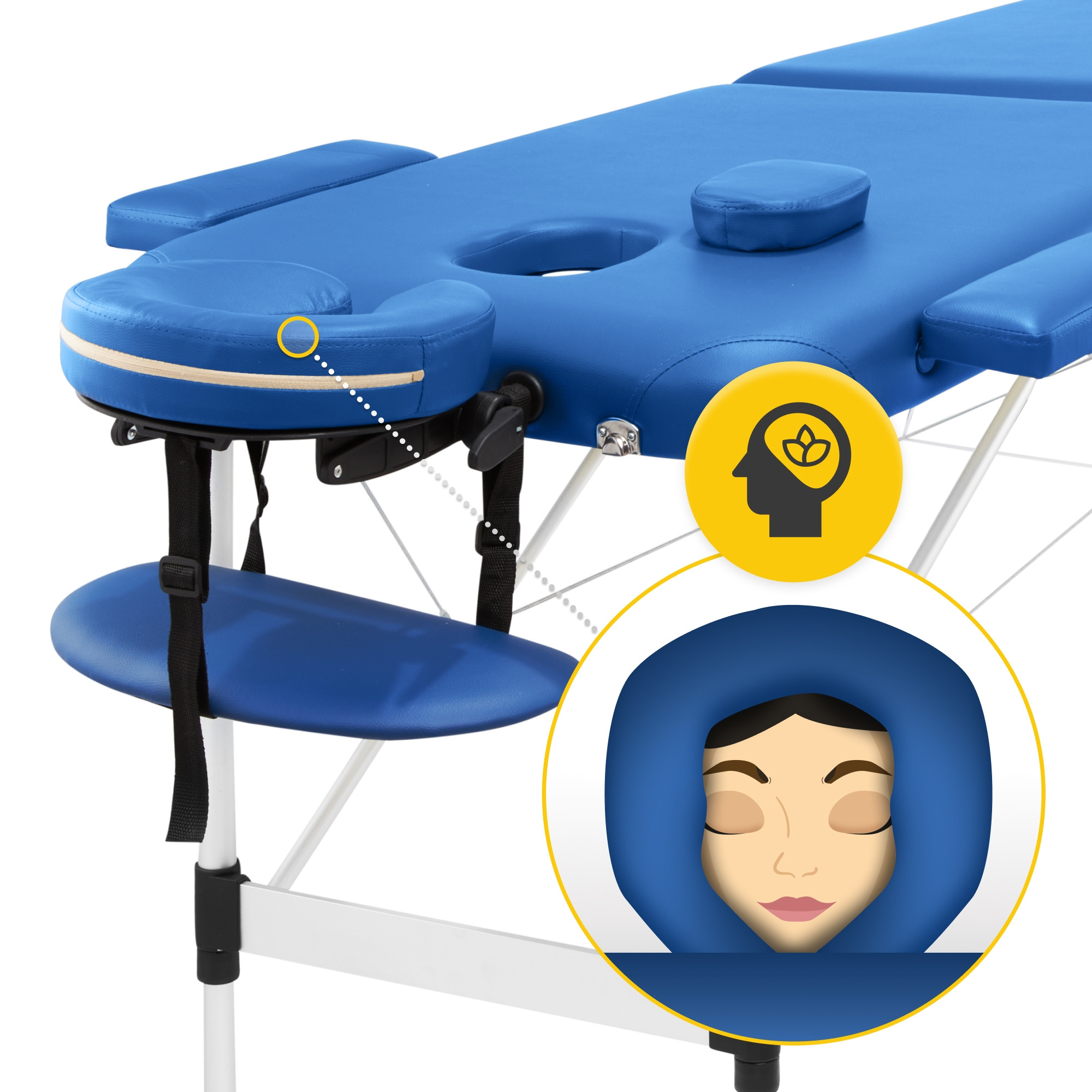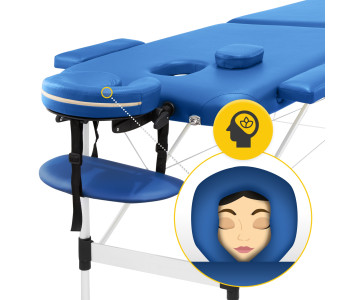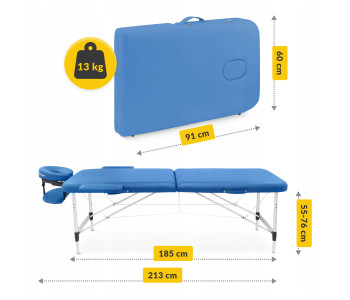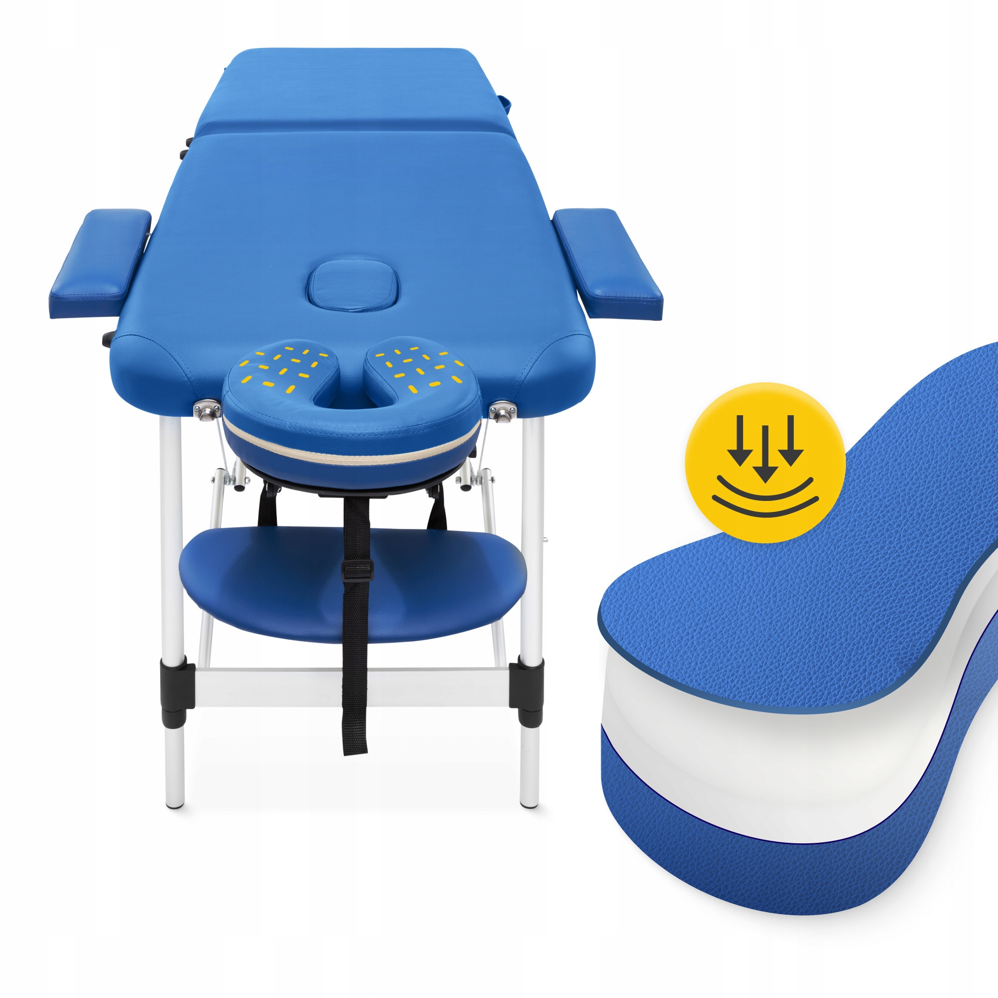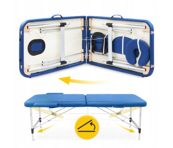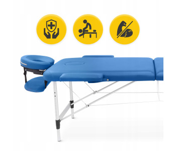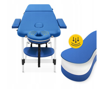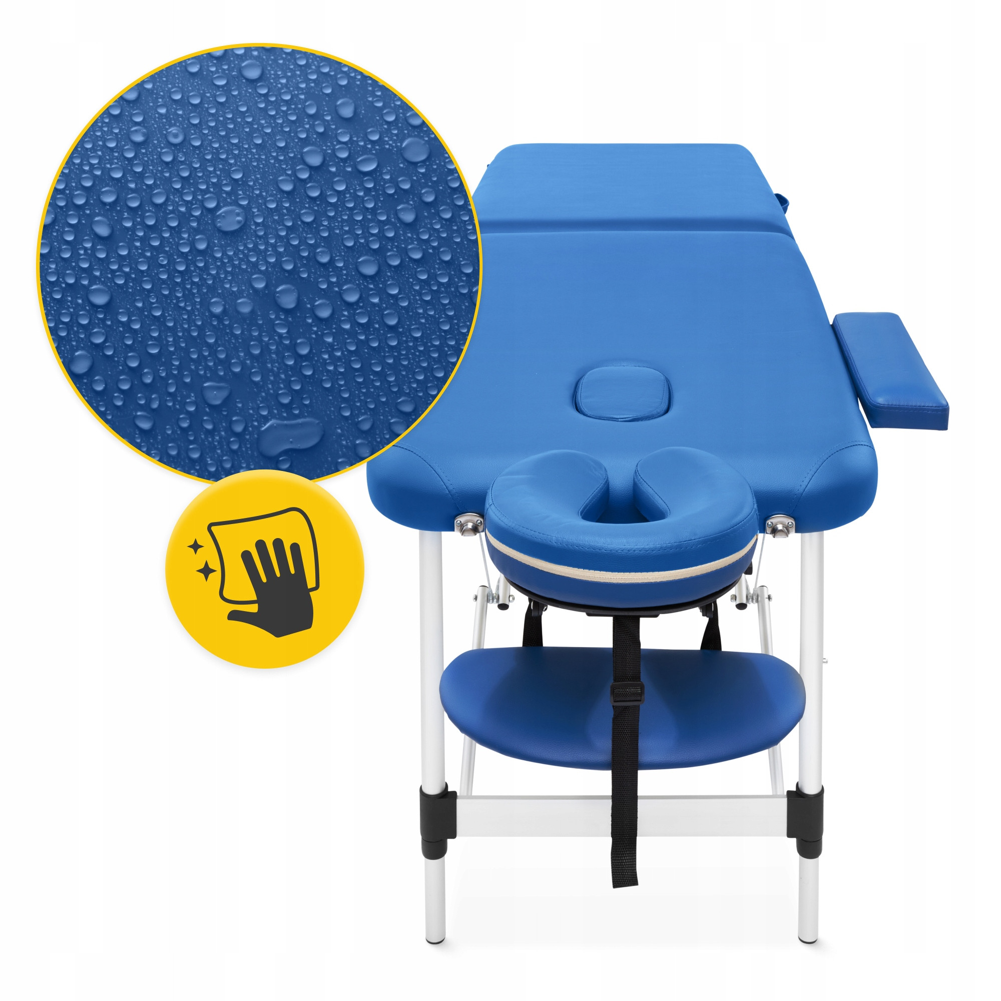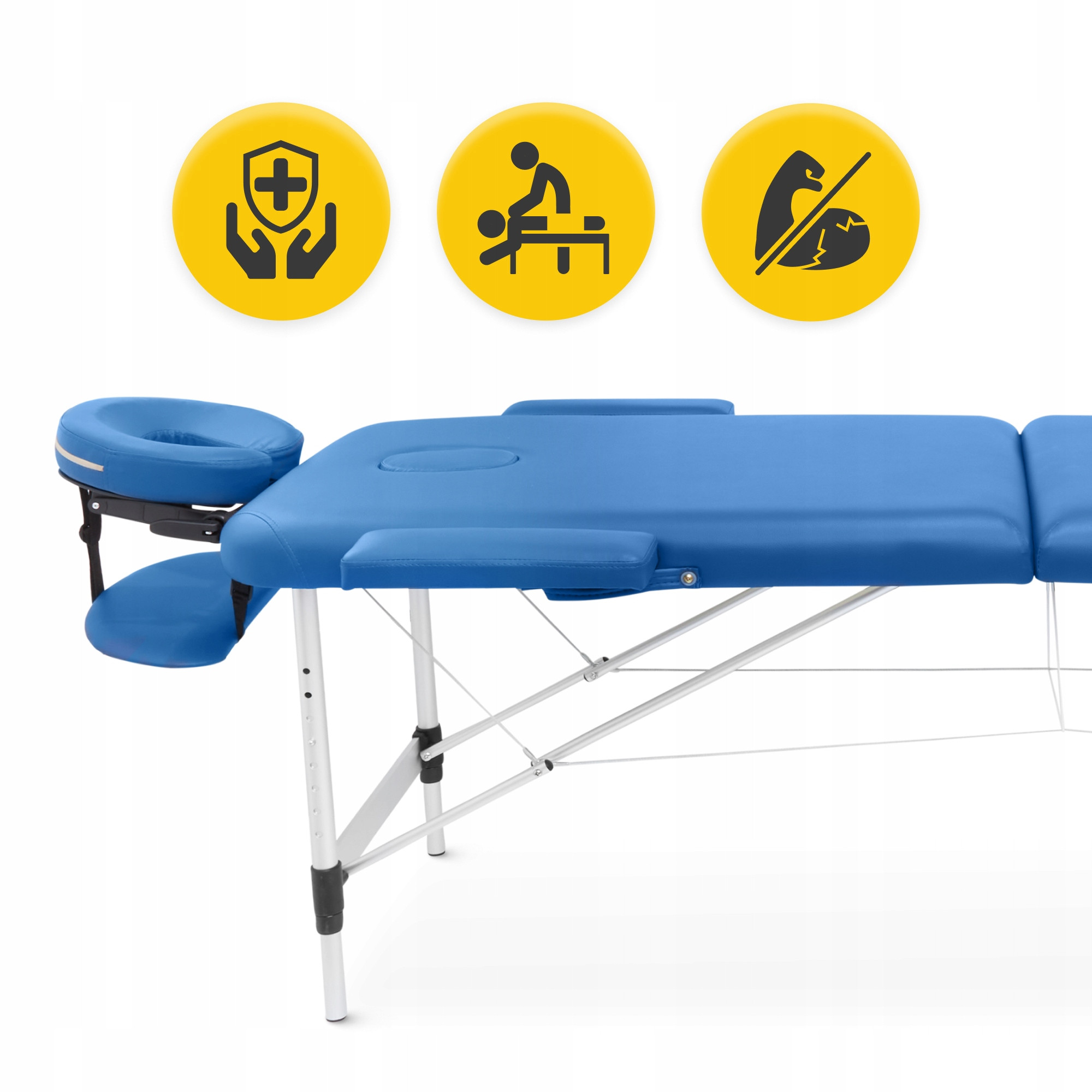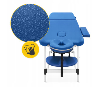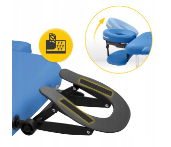 Масажний стіл від 4FIZJO сконструйований так, що всі елементи фіксуються нерухомо при складанні та поміщаються всередину транспортної сумки, що йде в комплекті. Каркас столу виконаний з алюмінію, завдяки чому він міцний та стійкий. Для додаткової безпеки конструкція столу підсилена стальними тросами, що утримують його від вібрації в розкладеному стані. Сегменти масажного столу покриті приємною на дотик екошкірою та наповнені м'якою піною, що адаптується до вигинів тіла. Борти закруглені для більшого комфорту використання. Стіл оснащений регульованими підлокітниками та полицею на якій також можна розмістити руки або використовувати її, як підставку для телефону. Профільований підголівник адаптується до форми обличчя та голови, тому не здавлює ніжні лицьові нерви. Виріб має безліч регулювань, що дозволить адаптувати його до різних видів діяльності.