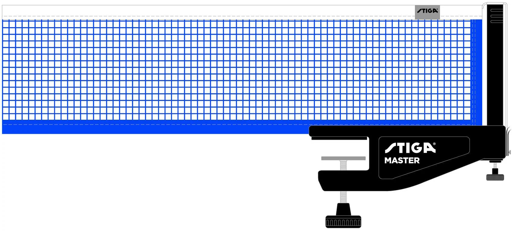 Сітка для настільного тенісу Stiga Master - це повноцінна сітка для настільного тенісу, що складається з металевої підставки та сітки з бавовни. Ця модель має гвинтову функцію, що означає, що ви просто прикручуєте підставку для сітки до столу. Висоту та пружність сітки можна регулювати.