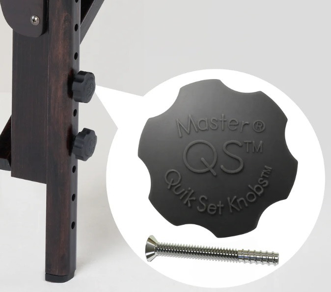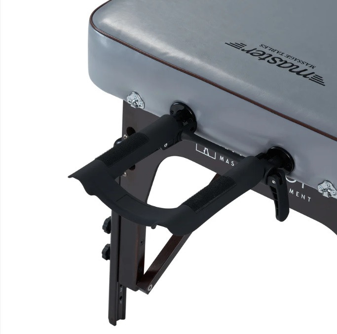 Масажний стіл Montour LX швидко та легко встановлюється завдяки стабілізатору, ручкам для ніг Quick-Set та системі автоматичного блокування ніг.