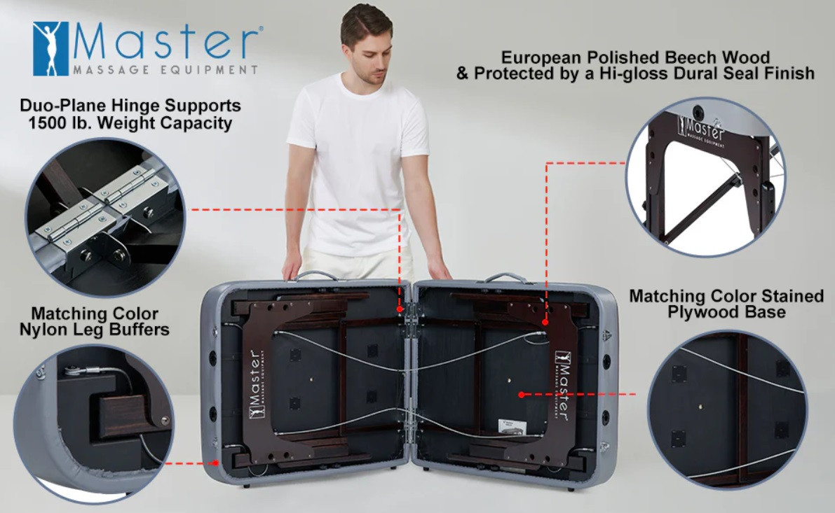 Портативний масажний стіл Montour LX ідеально підійде і для професійних масажистів, і для початківців, які шукають надійний та зручний дерев'яний масажний стіл. Завдяки легкій конструкції стіл зручний для транспортування, але також і достатньо міцний для професійного використання.