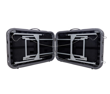 - Міцний, але легкий. Завдяки алюмінієвим ніжкам і каркасу, стіл має високу міцність, залишаючись легким та зручним під час його транспортування.