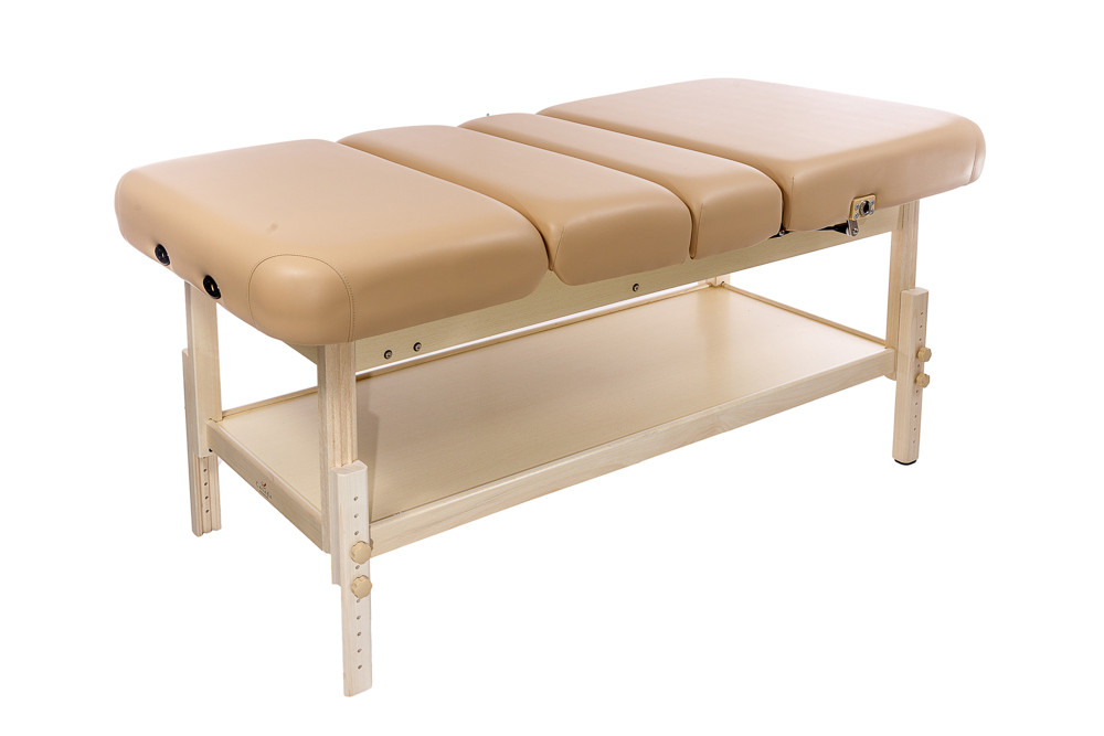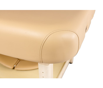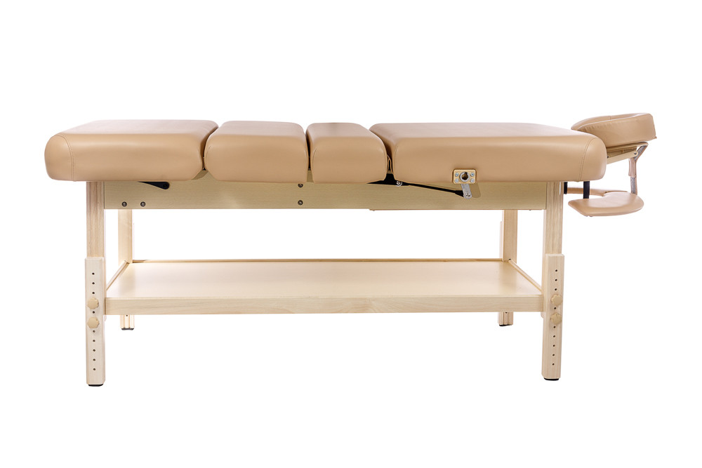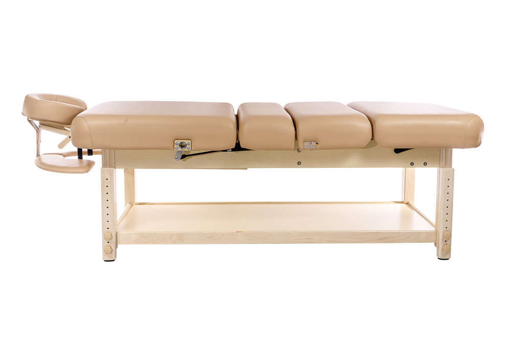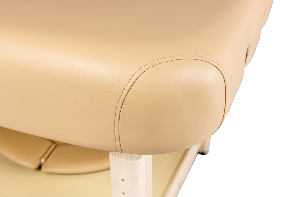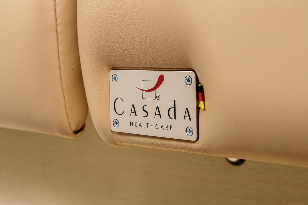 Casada Bremen Spa виготовлений з міцного європейського бука, що забезпечує довговічність та елегантний вигляд. Завдяки заокругленим кутам конструкція виглядає сучасно та безпечно для клієнта. Додаткова відкрита полиця дозволяє зручно зберігати необхідні аксесуари та приладдя під час сеансу.