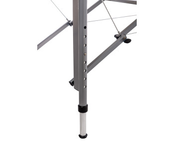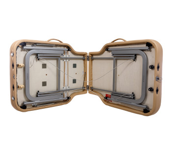 - Міцний, але легкий каркас. Поєднання алюмінієвих ніжок і надійної основи гарантує стійкість та водночас полегшує транспортування столу.