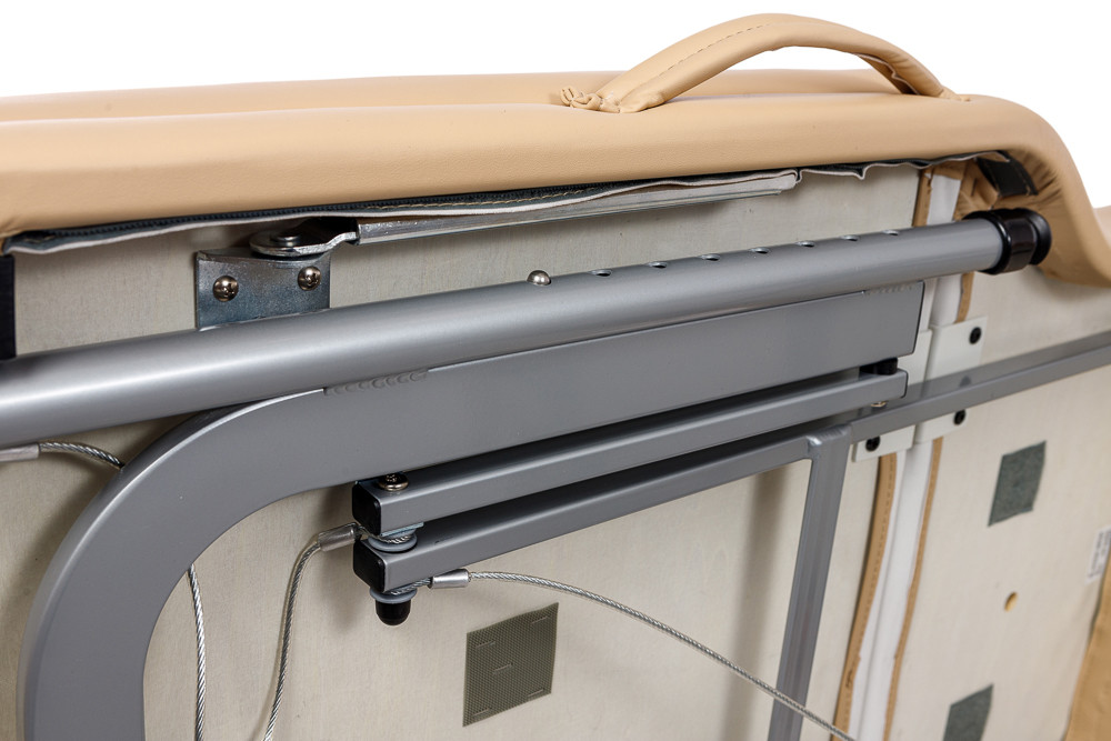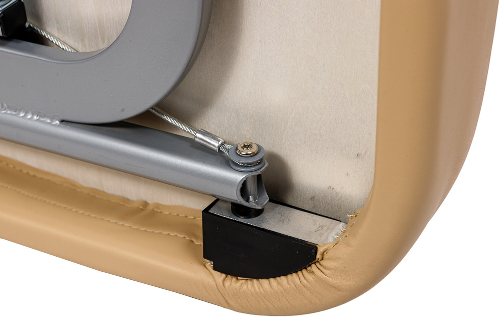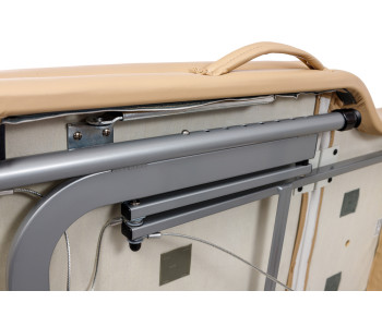 - Зручна система регулювання висоти. Кнопковий механізм дозволяє швидко налаштовувати висоту столу під різні типи процедур.