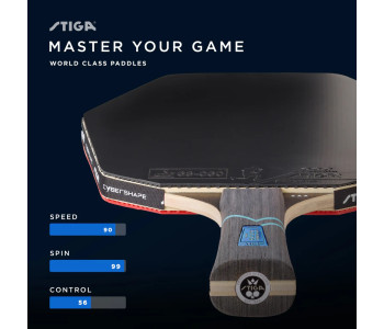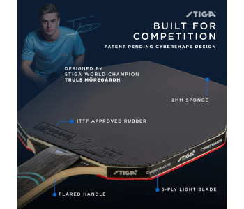 Збільшена зона сприйняття - У співпраці з Королівським технологічним інститутом (KTH) STIGA також протестувала вібраційні властивості Cybershape, тобто те, як рухається лезо. Випробування показали, що Cybershape має більшу зону найкращого сприйняття, розташовану вище на основі ракетки ніж стандартна форма, що дає більшу потужність при ударах без втрати контролю над м'ячем.