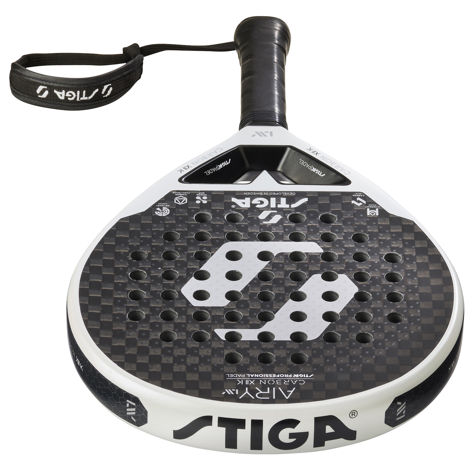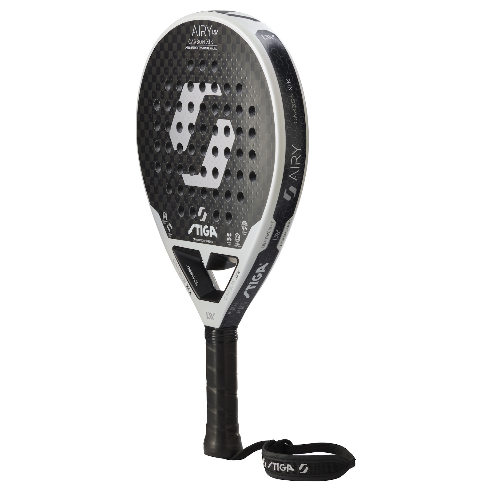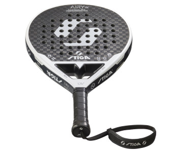 Stiga AIRY — це легка і швидка ракетка від STIGA Sports для гравців, які шукають трохи легшу ракетку, щоб зменшити навантаження на лікті та зап'ястя без шкоди для ефективної гри на корті. Ця ракетка виготовлена з м’якої піни Hypersoft для створення відчуття комфорту в поєднанні з міцною поверхнею з високоякісного карбонового волокна для забезпечення чудової швидкості в ударах. Поверхня удару ракетки AIRY складається з карбонового волокна Carbon XII K, що означає поверхневі шари складаються з 12 000 ниток карбонового волокна на см². Карбонове волокно XII K покращує всі необхідні характеристики під час удару по м’ячу. Тим не менш, ударна поверхня не надто жорстка і завдяки технології Optispot Vision вона зберігає відчуття вібрації для приємного удару м’яча та відчуття після кожного удару. Поверхня цієї ракетки також оснащена Power Grip, шорсткою структурою, яка надає гравцеві більше обертання м'яча. Ця модель від STIGA Sports має подовжену рукоятку, щоб забезпечити простір для удару зліва двома руками. Ракетка також оснащена каркасом Carbon Flexi із 100% карбонового волокна для чудових ігрових властивостей і неперевершеної довговічності.