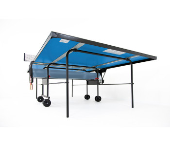 Stiga Outdoor Roller - всепогодний тенісний стіл, призначений для гри в настільний теніс як на вулиці, так і в закритих приміщеннях. Ігрова поверхня виконана з меламінових плит товщиною 4 мм із металевою крайкою по периметру. Каркас та ніжки виготовлені з металевих трубок діаметром 25 мм із порошковим фарбуванням. Чотири здвоєні транспортувальні колеса діаметром 125 мм, два з яких обертаються на 360°, суттєво полегшують переміщення столу за потреби. Тенісний стіл оснащений сіткою та тримачем для ракеток і м'ячів. Складана конструкція з автоматичною системою блокування забезпечує зручне зберігання столу в домашніх умовах. Піднявши одну з половинок стільниці, тенісний стіл можна використовувати як для одиночних тренувань, так і для гри людьми з обмеженими можливостями. Стільниця забезпечує хороший відскок м'яча, а покриття антивідблиску дозволяє грати довше, не напружуючи очей. Тенісний стіл Stiga Outdoor Roller відповідає Європейським стандартам безпеки EN 14468-1/2.