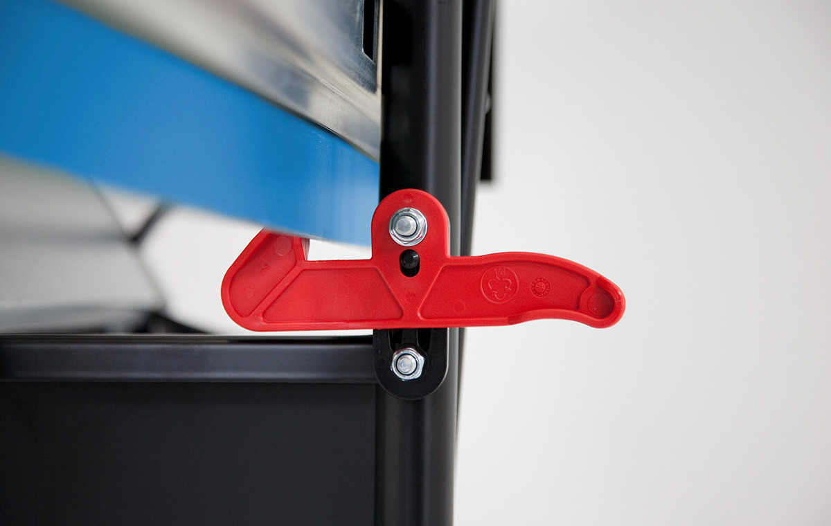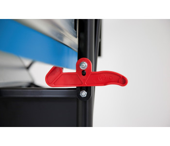 Запобіжна планка - запобігає перебуванню людей між стільницями в складеному режимі. Це також одна з ознак того, що виробник дотримується європейського стандарту (EN 14468-1). Столи для настільного тенісу, які не демонструють цієї функції та між поверхнями яких є проміжок понад 10 см у положенні для зберігання (не в положенні для гри), не відповідають європейським вимогам безпеки .