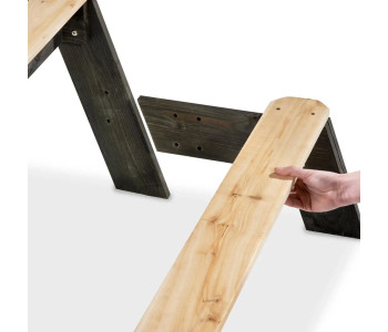 Стіл виготовлений із сертифікованої FSC® деревини кипариса, стійкої до вологи та розтріскування. Безпечний для дітей, не потребує додаткової обробки перед використанням.