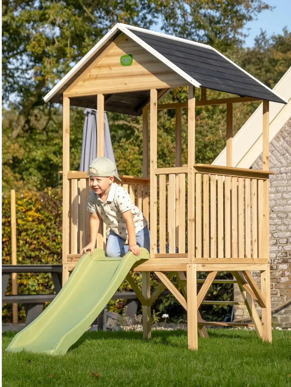 - Створіть ідеальний ігровий простір для ваших дітей разом із дерев'яним ігровим будиночком EXIT Panorama 300! Цей стильний і міцний будиночок на палях із гіркою подарує дітям незабутні враження від гри на свіжому повітрі.